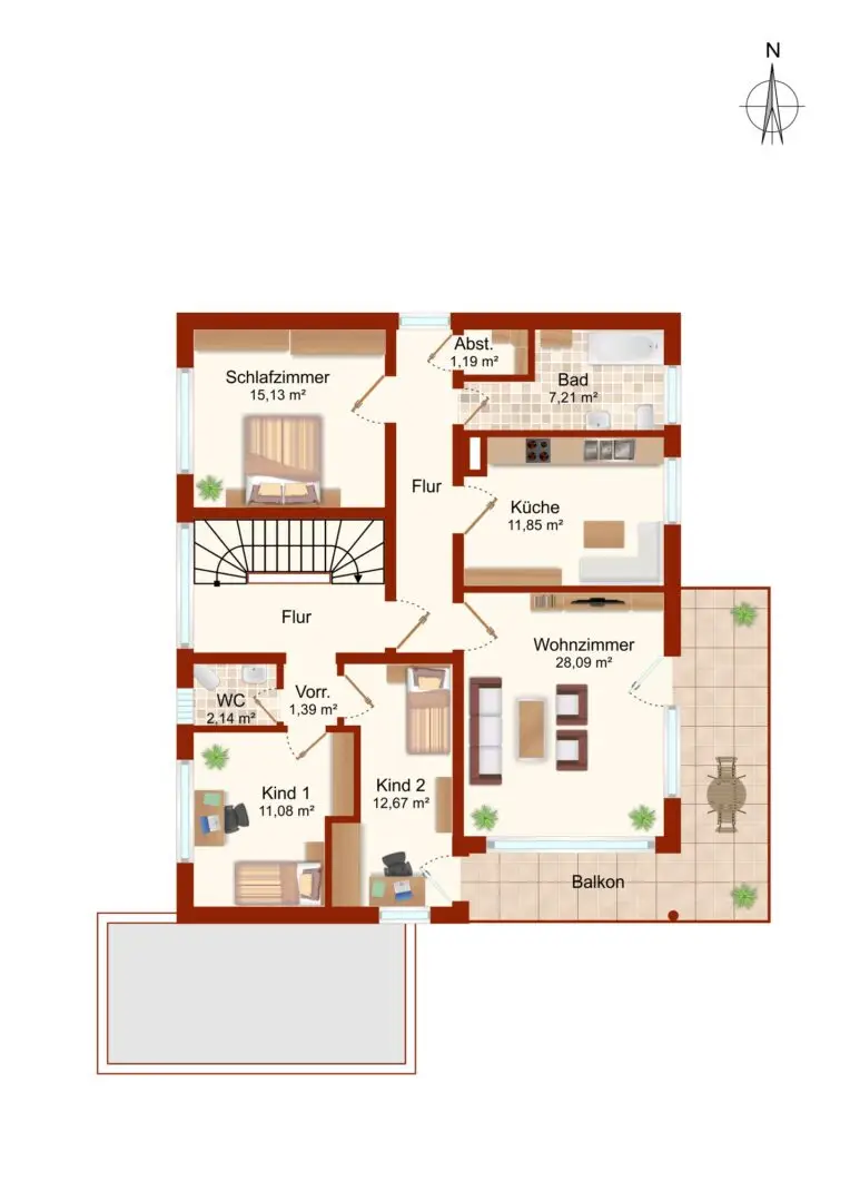 Bereits beim Betreten wird deutlich: Hier steht Platz im Vordergrund. Die Raumaufteilung ermöglicht sowohl gemeinschaftliches Familienleben als auch Rückzugsmöglichkeiten – perfekt, wenn mehrere Haushalte unter einem Dach wohnen oder Wohnen und Vermieten sinnvoll kombiniert werden sollen. Die vorhandenen Balkone erweitern den Wohnraum nach draußen und schaffen zusätzliche Aufenthaltsqualität.